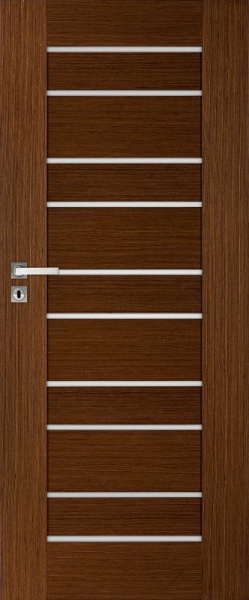 Profil hrany dveří je bezpolodrážkový hranatý. Horní a obě boční hrany jsou olepeny okrajovou dýhovou páskou ve stejné dřevině jako povrch dveří.